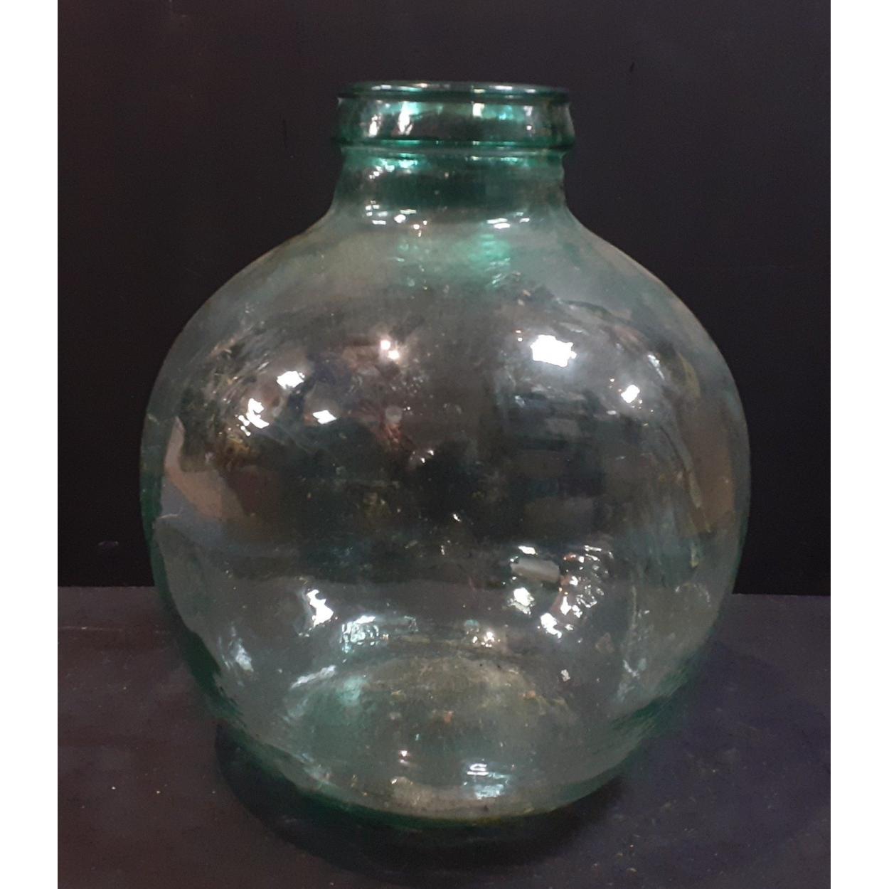 Green glass carboy standing 38cm tall approx and 30cm wide WOULD MAKE IDEAL TERRARIUM PLANTER!