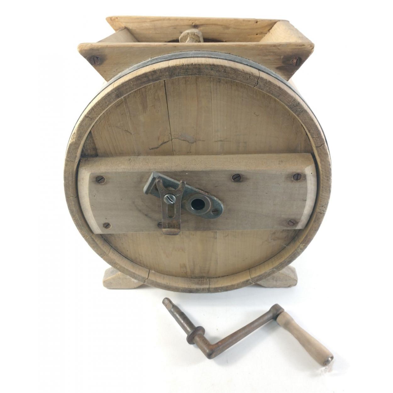 DECORATIVE! Interesting vintage wooden butter churn barrel with handle. Stands 37cm approx.