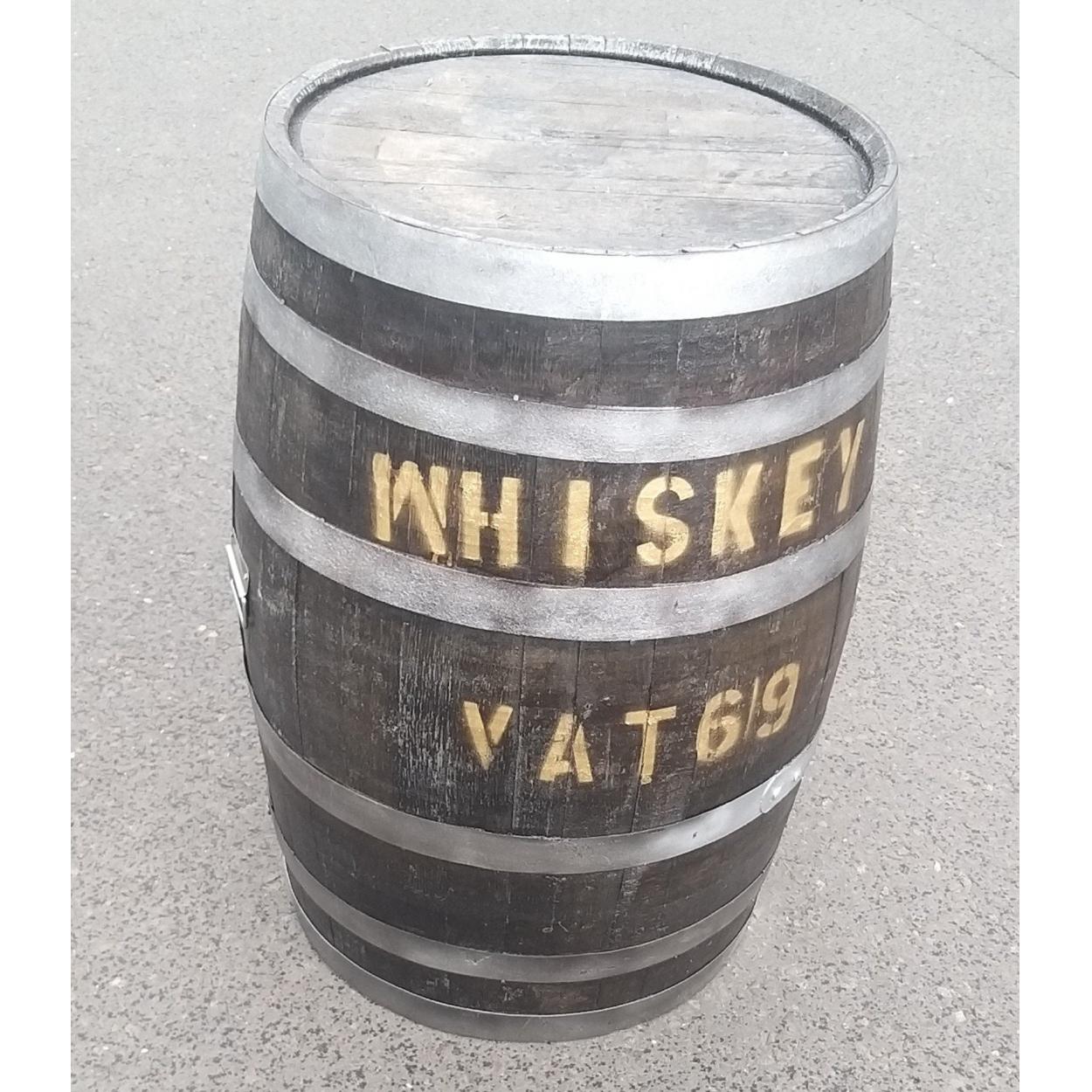 FULL SIZED WHISKY BARREL with decorative 'WHISKY VAT 69' emblem - barrel is in excellent condition, dimensions 92cm height x 66cm approx