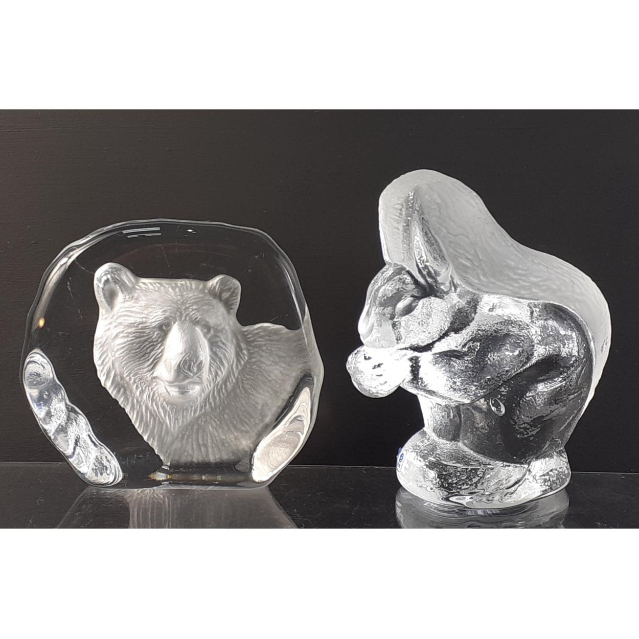 Carved inner bear crystal glass paperweight height 8.5cm approx with also a glass squirrel height 10cm approx paperweight
