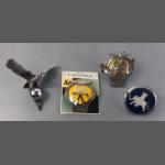 A superbly sculpted Spreadeagle car mascot with a 16cm wing span, an AA badge with a replica and one other. A nice collection.