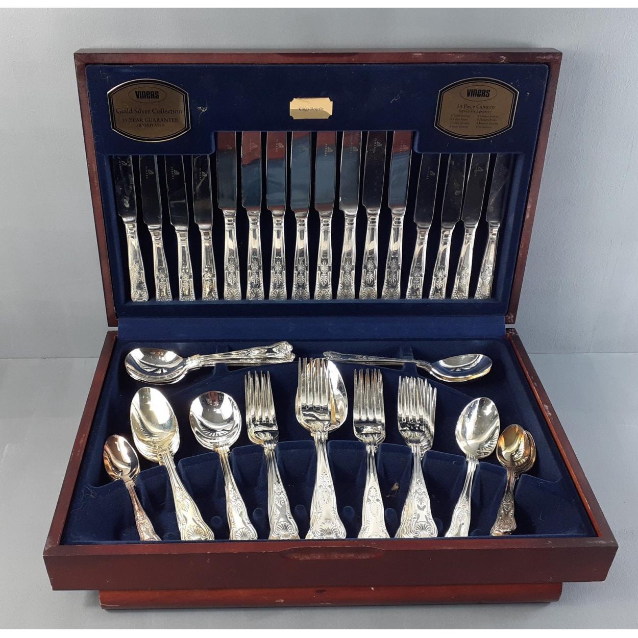 VINERS 58 piece silver plated canteen in case. Kings Royale pattern. In good useable condition.