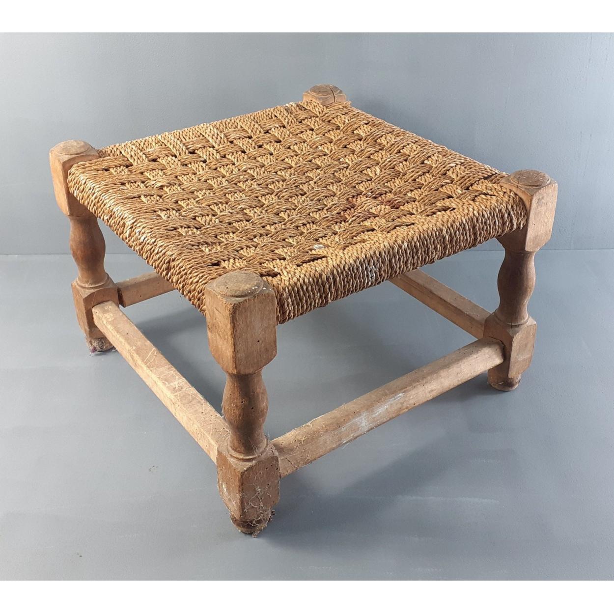 A traditional small woven footstool, 32 x 32 x 23cm approx. Struts need tightening.