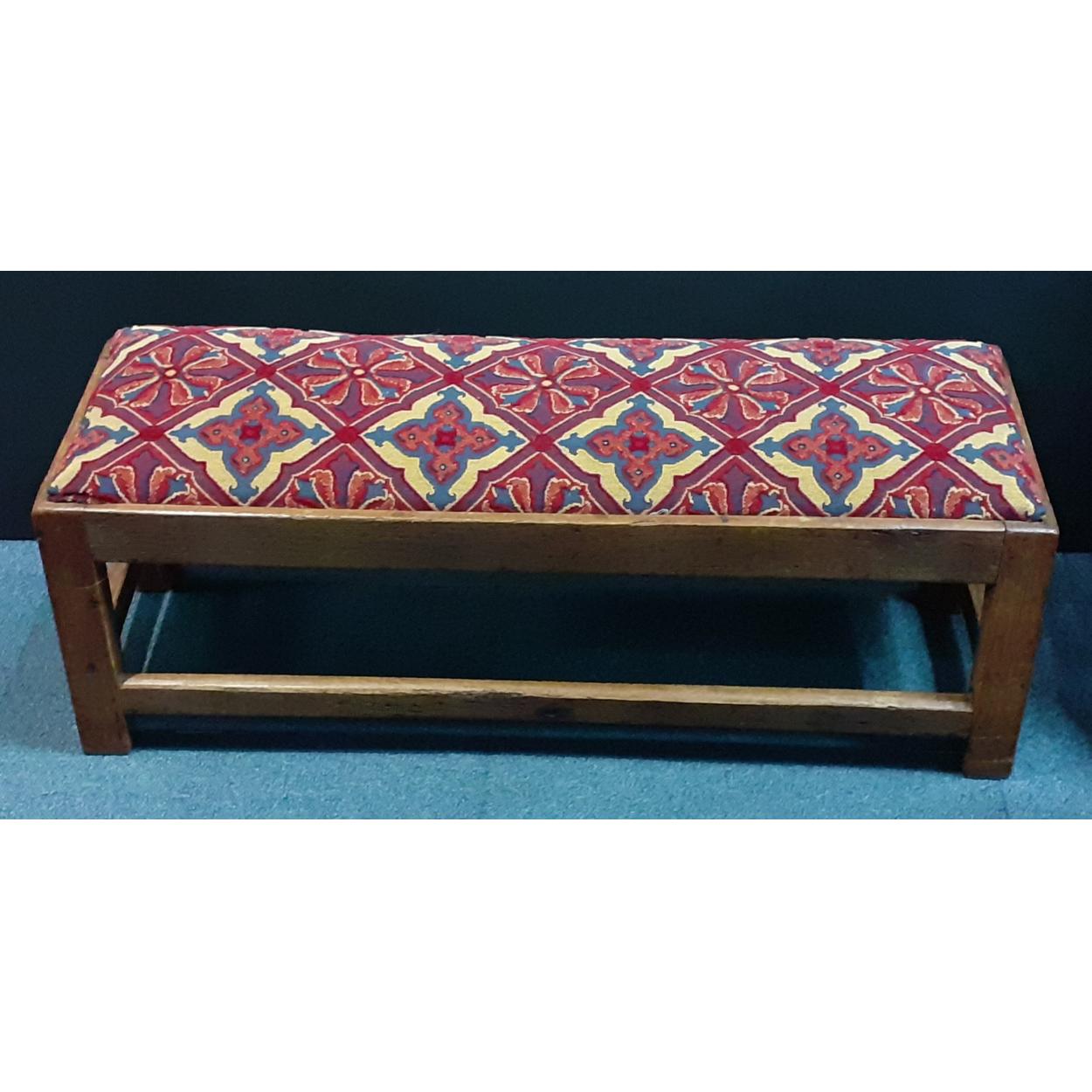 A low hard wood long stool with padded top. Nice looking piece and useful too! 90cm x 30cm x 30cm approx.