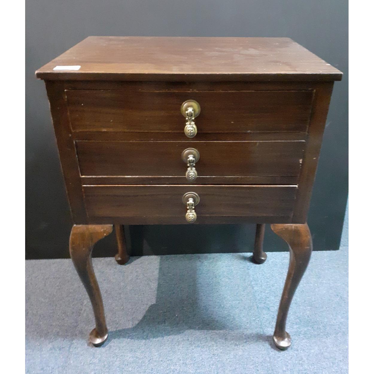 An ANTIQUE bedside cabinet with three drawers on cabriole leg supports - dimensions 48cm wide x 35cm depth x 68cm height approx - a handy item!