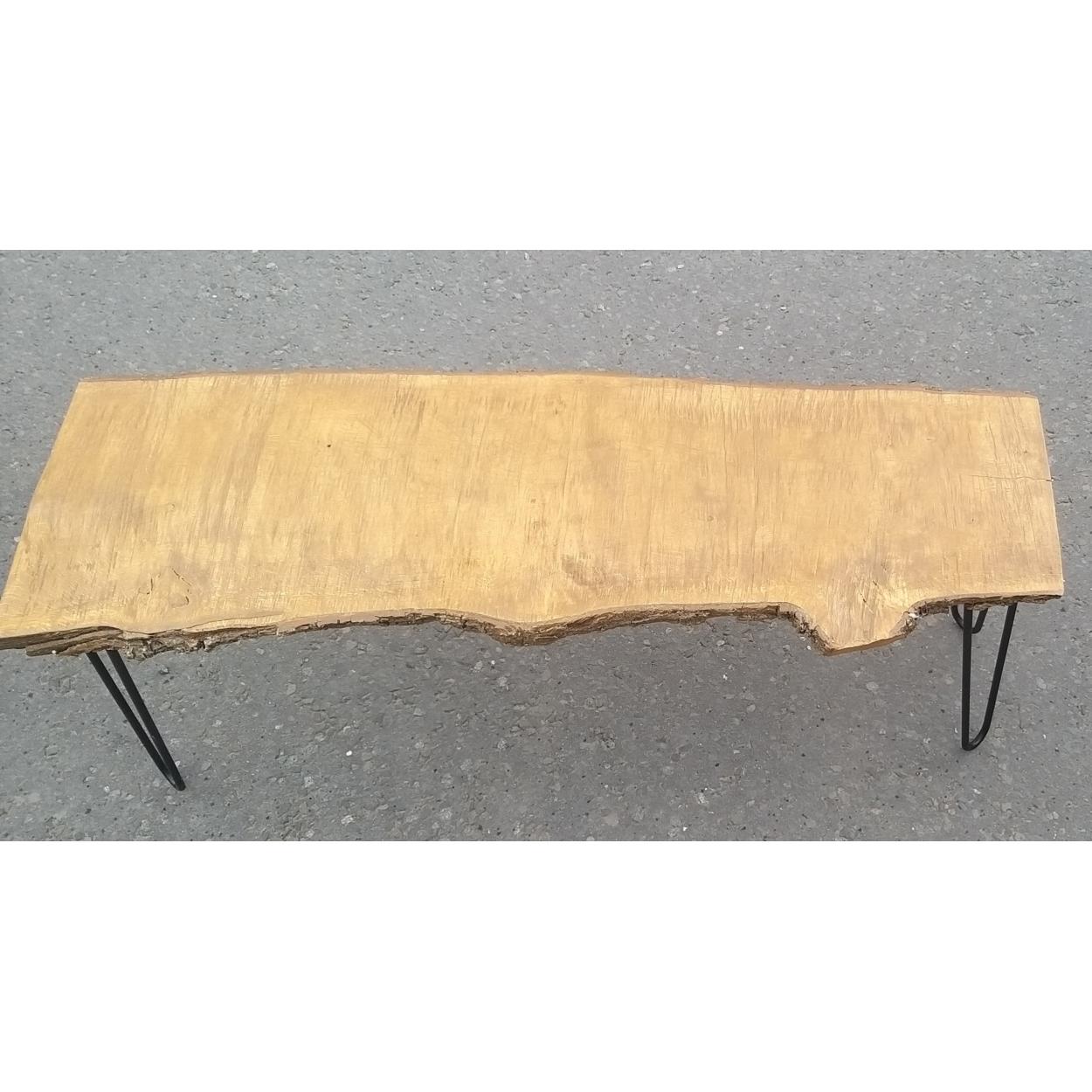 STYLISH! - AN UNUSUAL & SUBSTANTIAL RUGGED-CUT (slice through a hard-wood tree) dining or general use coffee table - 108cm length x 35cm depth one end and 28cm the other end depth x height 45cm approx