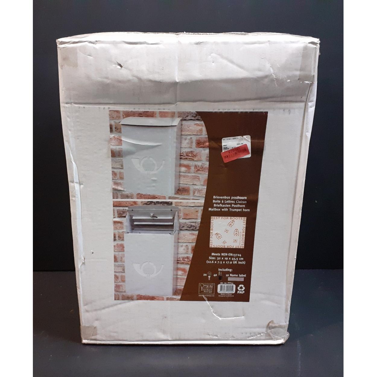 New in box. Posthorn wall mounted mailbox. 32 x 19 x 45cm approx.