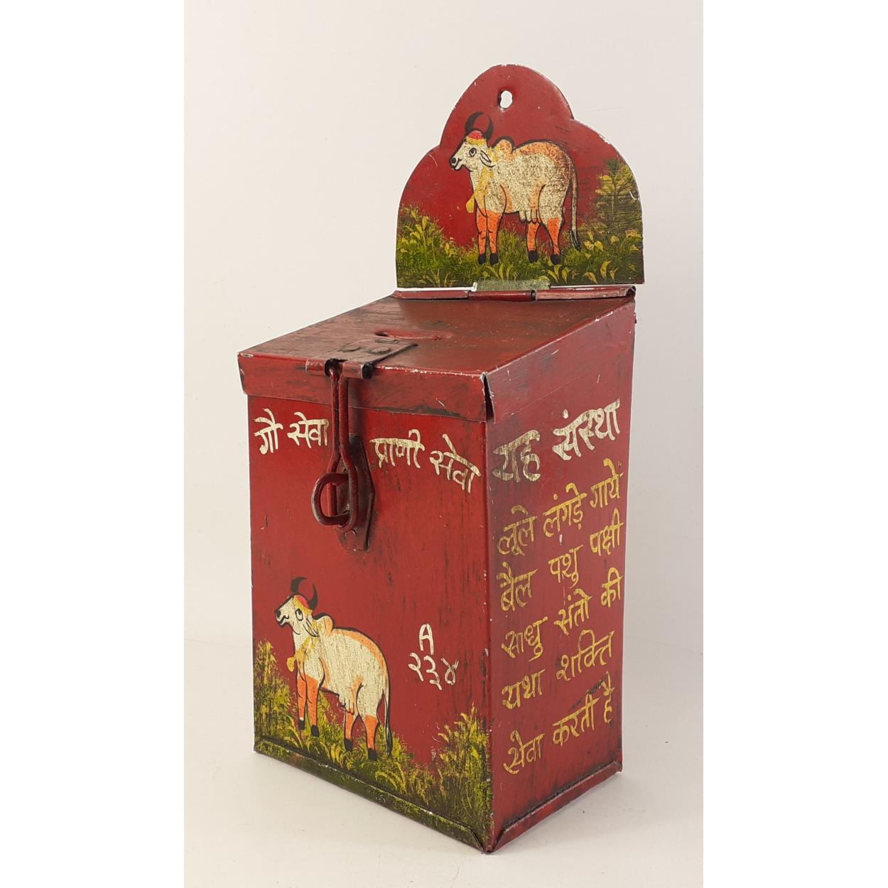Indian Decorated vintage money wall tin. 25cm. tall.
