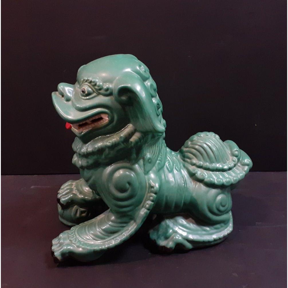 A SUBSTANTIAL and impressive FOO DOG in green ceramic finish. Height 43cm, length 45cm approx.