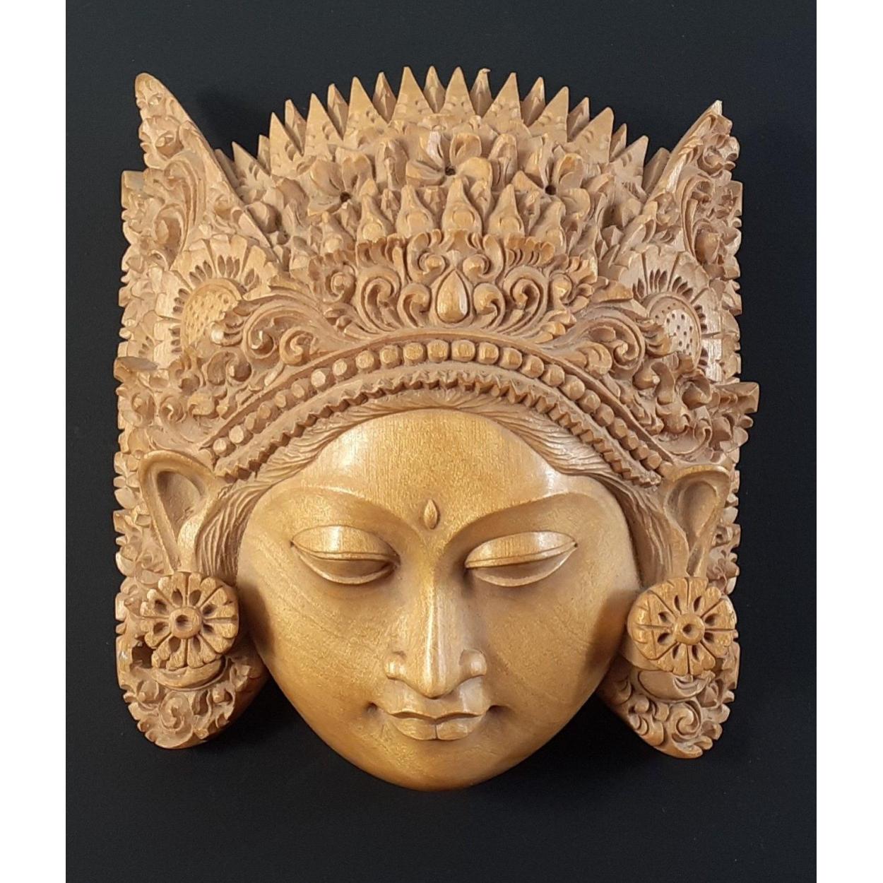 SUPER QUALITY! A detailed hand-carved wooden Asian deity measuring approx 13 x 15cm