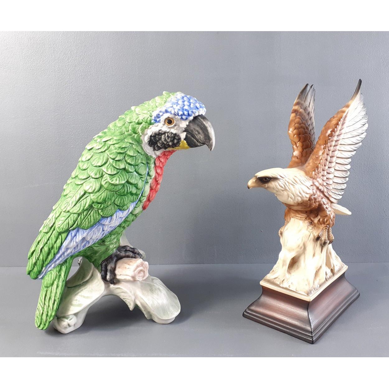 Two bird ornaments. A nice colourful PARROT 21cm tall and one other.