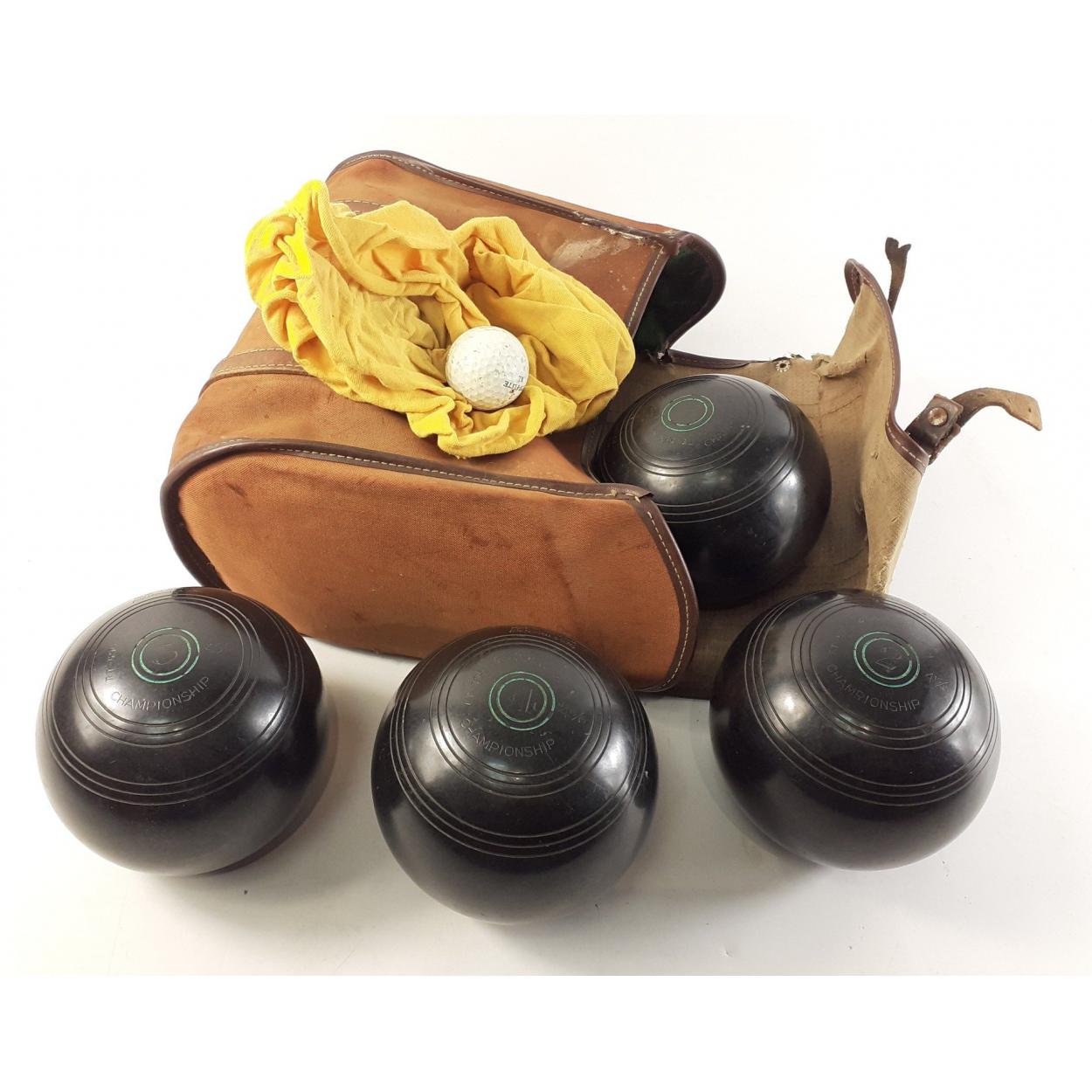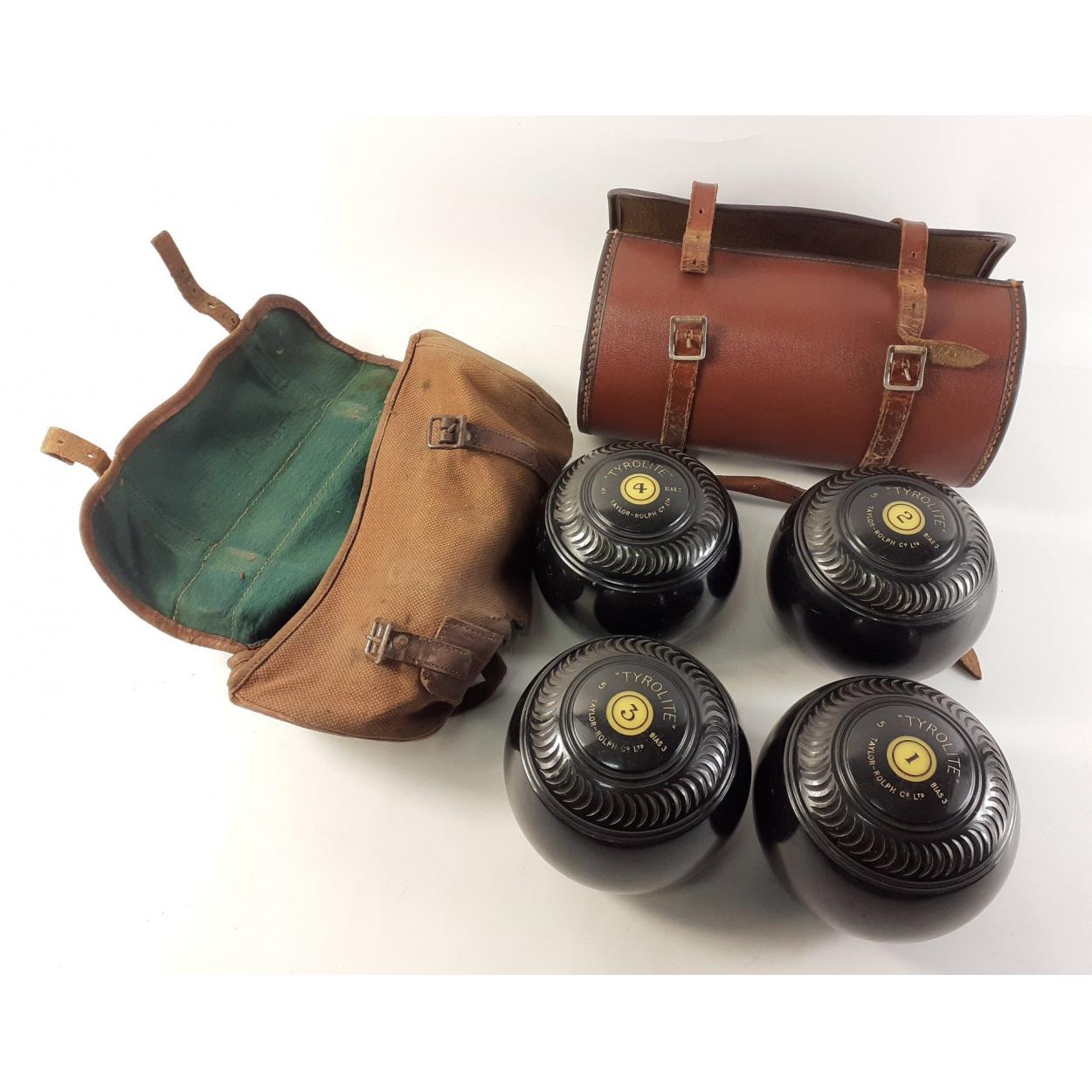 A set of four Tyrolite Taylor-Rolph Lawn Green Bowls in cases. Good used condition.