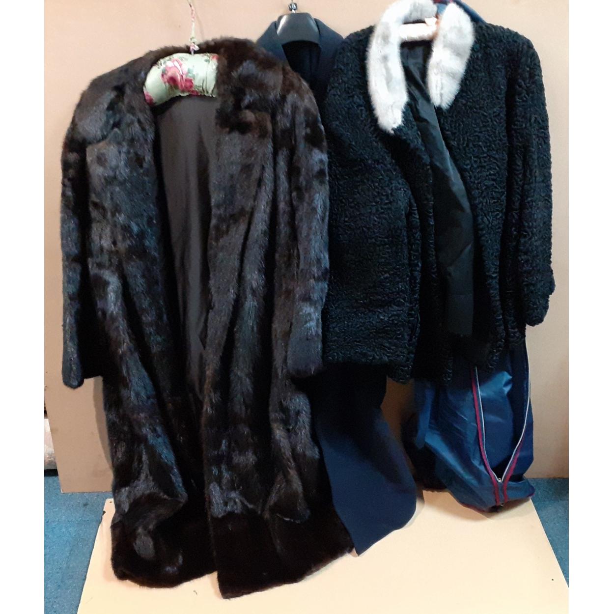 DOMINION Fur coat 52" chest approx. And one other similar jacket. Also a M&S gents coat size L.