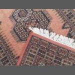 An attractive wool rug in shades of coral and cream. Measures 190 x 120cm approx. In good condition
