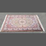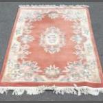 An attractive wool rug in shades of coral and cream. Measures 190 x 120cm approx. In good condition
