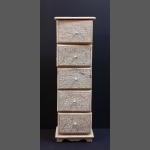 A 5 drawer chest of drawers with carved drawer fronts measuring 80 x 25 x15cm approx