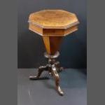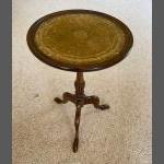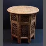 A carved wooden side table ( 45cm dia approx ) on an octagonal folding base 55cm high approx