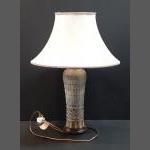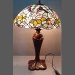 A striking TIFFANY style lamp in shades of blue, pink and purple. Stands approx 70cm high