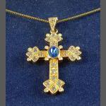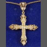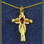 CAMROSE & KROSS. Pretty gilt replica Jacqueline Kennedy collection cross on gilt chain.