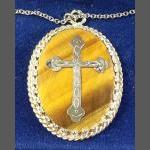 CAMROSE & KROSS. Pretty silver hallmarked mount. Religious crucifix on polished stone.