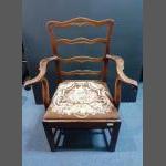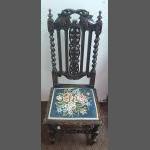 A charming antique armchair with inlay and tapestried panel and seat-pad - lots of character