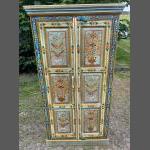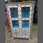 BRAND NEW ITEM UNUSED A vintage ALMIRAH /tall cupboard with two doors with 3 bevelled - hand painted in both sides and top and front facia - TRULY A COLOURFUL STATEMENT STORAGE PIECE Dimensions 92cm x 38cm depth x 150cm height approx