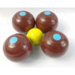 A set of four THOMAS TAYLOR of Glasgow bowls No. 3 bias plus a yellow jack