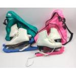 Two pairs of ice-skating boots in carry bags, one pair by Riedell (US size 5 1/2), the other by Risport (UK 37)