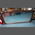 A large and impressive rectangular wall mirror with ornate carved dark wood frame. Wonderful acorn themed scroll work at top centre. Measures 145cm x 83cm approx.