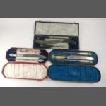A cased antique silver collared WALKER & HALL carving set Sheffield 1920. Horn handled with steel blades and silver collars and finials, the set could do with cleaning. Lot includes two other similar boxed sets but in steel.
