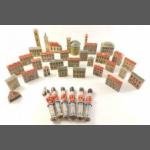 A super selection of antique wooden model village pieces. Possibly German. Pus a set of 6 wooden soldier skittles