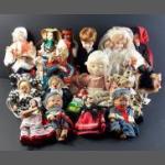Four collectors' dolls with ceramic faces, each approx 46cm high plus a harlequin 40cm high approx.