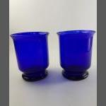 A stunning pair of Bristol Blue glass vases. Very attractive. Each approx 16cm high