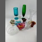 An attractive and useful lot of decorative glassware to include large crystal vase 26cm approx, several very good quality coloured glass vases and other decorative items.