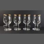A set of four IRISH COFFEE GLASSES with gilt rims and round handles - height 14cm approx