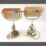 TOP QUALITY - Two reproduction banker's lamps with bronze shades, each standing approx 39cm high