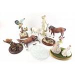A good collection of ornaments to include ROYAL DOULTON horses x 3, two with damage. BORDER FINE ARTS x 3 in good condition. Two Royal Doulton small ladies in good condition. A repaired Royal Doulton bird.