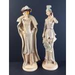 Two elegant stylish LEONARDO flapper girls standing 40cm high approx. Small nibble from one figure.