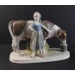 In the manner of BLUE DANUBE, a China figurine of a girl with cow, 20cm across approx. Stamped 862. Small chip to bottom.