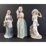 A set of 3 LEONARDO figurines of pretty young maidens in pastel colours. Tallest figurine standing approx 34cm tall.