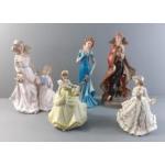 A mixed lot of 5 attractive lady figurines, mainly LEONARDO, tallest standing 27.5 cm approx - would make a nice collection.