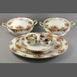 A collection ROYAL ALBERT Country Roses in excellent condition to include a large (42cm) platter, 32cm platter, 2 x 22cm tureens, 2 x 27cm sandwich plates, and 2 floral candlesticks