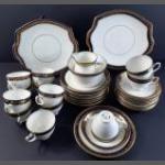 A tea service with an attractive cobalt blue and gilt edge by DIAMOND China to include 2 sandwich plates (25cm), 12 side plates (18cm), 12 saucers, 12 cups, a sugar bowl and 1 milk jug.