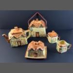 A PARAMOUNT pottery country cottage style tea service to include a teapot (chip to spout), milk jug, lidded sugar bowl, butter dish and biscuit barrel