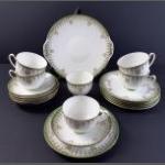 A ROSINA china tea service 6 each of cups, saucers and side plates. Beautiful floral pattern with gilt edges in lovely condition. Also includes modern WEDGWOOD tea service with 6 mugs, saucers and side plates