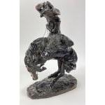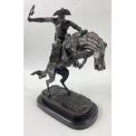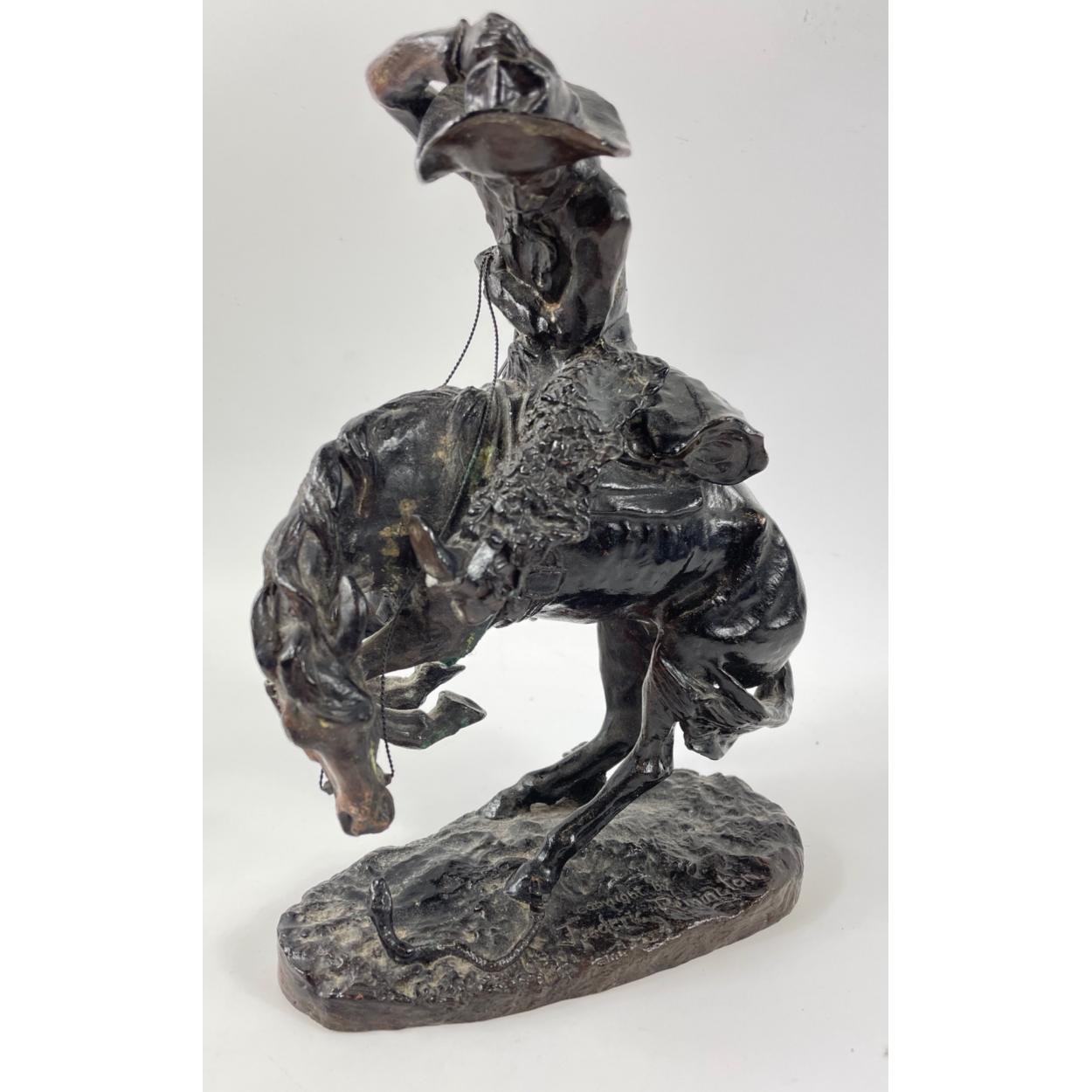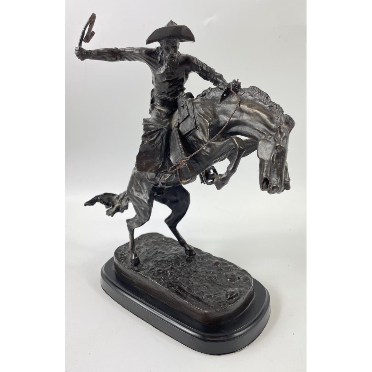 SUPER COLLECTABLE A lost wax bronze of a cowboy on a horse with a whip, stamped Frederic Remington standing approx 24cm high