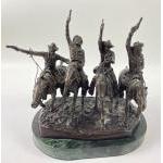 SUPER COLLECTABLE Coming through the Rye - A group of four bronze mounted cowboys on a marble plinth stamped 'copyright by Frederic Remington', standing approx 20cm