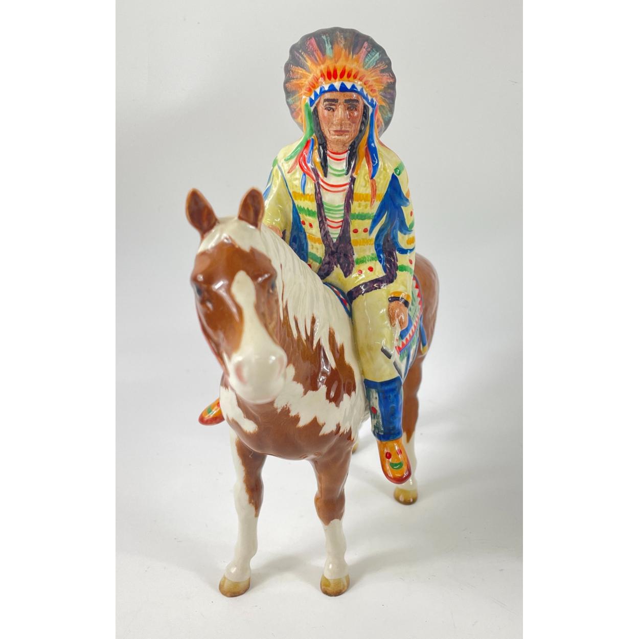 A rare BESWICK figurine (stamped 53 on horse's foot) of a vibrantly coloured Native American Chief on a skewbald horse H 8.75” W. 8”