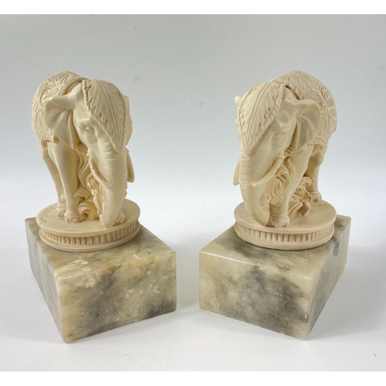 A pair of ARNALDO GIANELLI alabaster sculptured elephant bookends standing 14cm high, very slight damage to tusk