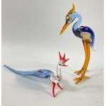 Two ITALIAN delightful glass bird ornaments the first being a peacock 19cm long (small chip from end of tail), the second being a majestic heron in shades of blue and orange standing 15cm high
